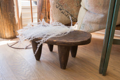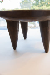 :: Vintage handmade African Senufo wood milk stool. Circa 1970s, this wooden stool was hand carved by the Senufo people in West Africa. A beautiful collectible that you or someone you love will cherish forever. As this item is in vintage condition, it may show signs of age and use. Size measures: 9.5" x 15.5" x 7.5".