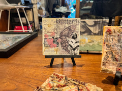 :: "Butterfly" original original mixed media art by Lillian Shad. Size measures 4" x 4" x .1".