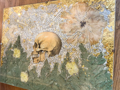 :: "Life Among Death" original mixed media art by Lillian Shad. Size measures 12' x 9" x .25".