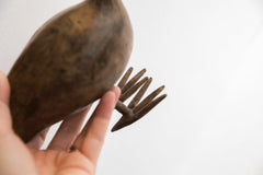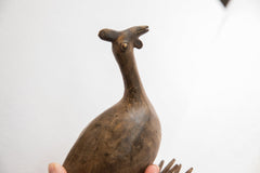 :: Vintage handmade African bird casting. Circa mid 20th century, each figure in this collection represents a different variation of protection and spirit used inside and outside of the local homes. These are beautiful collectibles that you or someone you love will cherish forever. As this item is in vintage condition, it may show signs of age and use. Size measures: 3" x 8" x 7".