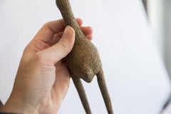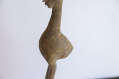 :: Vintage handmade African bird casting. Circa mid 20th century, each figure in this collection represents a different variation of protection and spirit used inside and outside of the local homes. These are beautiful collectibles that you or someone you love will cherish forever. As this item is in vintage condition, it may show signs of age and use. Size measures: 3" x 3" x 10".