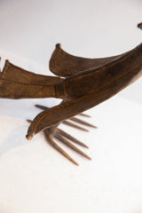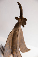 :: Vintage handmade African curved beak bird casting. Circa mid 20th century, each figure in this collection represents a different variation of protection and spirit used inside and outside of the local homes. These are beautiful collectibles that you or someone you love will cherish forever. As this item is in vintage condition, it may show signs of age and use. Size measures: 7" x 10" x 11".