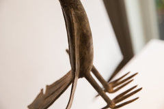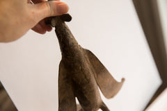 :: Vintage handmade African curved beak bird casting. Circa mid 20th century, each figure in this collection represents a different variation of protection and spirit used inside and outside of the local homes. These are beautiful collectibles that you or someone you love will cherish forever. As this item is in vintage condition, it may show signs of age and use. Size measures: 7" x 10" x 11".