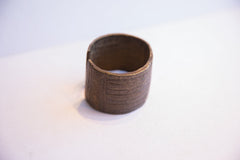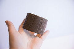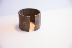 :: Vintage handmade African wide cuff bracelet. Exceptional vintage circa late mid twentieth century or older bracelet, likely used as currency. This piece is a unique collectible, with great craftsmanship having gone into its creation! As this item is vintage it may show signs of use, age, and/or oxidation. Size measures: 1.75" x 2.5" x 2.5" with an interior dimension of 2.25" while the opening measures 0.5".