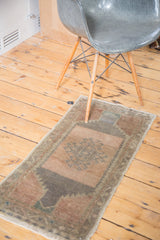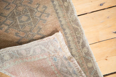 :: Minor center medallion with shadow lattice motif extending with hook design atop a light peach field. Other colors include deep dusty rose, natural ivory grey, faded teal, and a hint of mauve royal blue. Recently professionally cleaned ready for in-home use! Many years of enjoyment to come with this hand knotted Turkish Oushak rug mat circa 1980's vintage. Exact size measures 1'7" x 3'4".