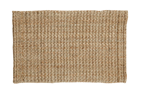:: Hand woven entrance mat made of entirely natural renewable fibers including hemp, jute, and sisal. Super durable for use as an entryway mat outdoors or in the vestibule of your home for boots, shoes, or even under an umbrella stand. Each mat comes with a natural rubber custom cut eco-friendly rug pad to keep them in place. Enjoy this beige handmade entrance mat woven in India measuring 2' x 3'1".