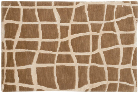 :: Horizontal and vertical interconnected striations in a web-like form bearing asymmetric sides, shape, and contour, all interconnected. Ivory cream tone in a simulated silk fiber adding to the dynamic and contrast of light and dark sides. Colors and shades include: Ivory, cream, camel, sand, and more. Condition notes: Like-new, original full pile height even across. Original side cord selvages intact. Fully secured sides and ends. Recently professionally cleaned ready for in-home use! Many years of enjoyment to come with this hand knotted Indian Contemporary design rug mat made in India circa 2000 - 2010 vintage. Size measures 2' x 3'.
