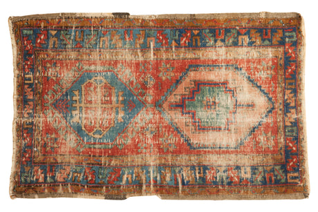 :: We can't get enough of this rug! Perfect perfect amount of wear and natural distressing, it features the most exceptional little mint green and ocean blue in its geometric design, not to mention the burst of red with a bit of pink nearby. It has such a great look! Recently professionally cleaned ready for in-home use! Fully secured sides and ends. Many years of enjoyment to come with this hand knotted distressed antique Bakshaish rug runner woven circa 1910's. Exact size measures 2'9" x 4'4".
