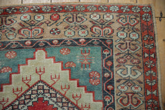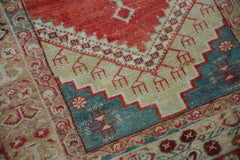 :: Single stepped center medallion with stepped contour atop an open abrashed field. End field overlays in diamond shaped checkered design elements and trident stylized germinating blossoms. Phenomenal abrashes and deep rich gem-like saturated shades with weaver nuance details mixing into un-patterned alternating floral fills in the outer minor border and amazing stretches of abrashes especially those found as the ground shade of the minor border as the weave climbs in progression. Colors and shades include: Ruby red, deep emerald green, deep teal, pale aubergine, aquamarine, pale lime green, beige, mauve, powder blue and more. Condition notes: Even wear across to knot heads with faint foundation showing through. Most of the original side cord selvages are intact or restored. Fully secured sides and ends. For processing purposes, this and other rugs of the type may have painted numbers on the reverse side. Recently professionally cleaned ready for in-home use! Many years of enjoyment to come with this hand knotted Turkish Anatolian rug made in Turkey circa 1960's vintage. Size measures 3'8" x 5'8".