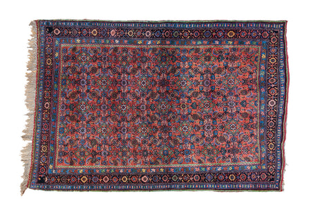 :: Antique Persian Bijar vintage 1920's. Colorful traditional and intricate allover Herati pattern flanked with a floral border. Wonderful range of colors, with an especially unique use of green. A lovely piece of extremely solid construction. Many years of enjoyment to come with this rug! Recently professionally cleaned, ready for in-home use. Exact size measures 3'6" x 5'2".