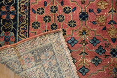 :: Lattice oriented panels of germinating floral bouquets and minor tree of life design motifs. Wrapped by meandering vine and floral cross view inner and outer minor borders. Main border in a double vine pinwheel flower design motif. Colors and shades include: Dusty blush, navy blue, powder blue, gold, dusty rose, cream, antique ivory, and more. Condition notes: Areas of pile, knot heads and foundation. Fully secured ends. Partial original side cord selvage intact. Recently professionally cleaned ready for in-home use! Many years of enjoyment to come with this hand knotted Persian Lilihan rug made in Persia circa 1940's vintage. Size measures 3' x 4'7".
