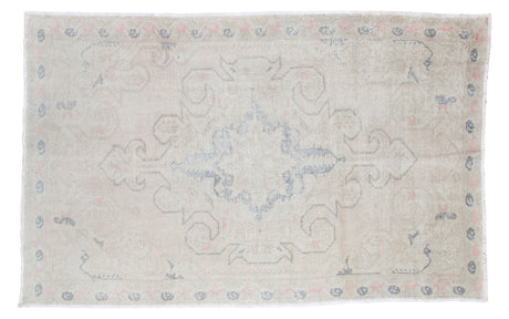 :: Light, airy and fresh vintage area rug made in Turkey circa 1970. Many years of enjoyment to come with this rug! Recently professionally cleaned, ready for in-home use. Exact size measures 4'7" x 7'2".