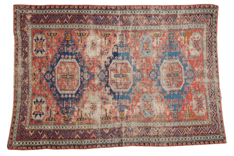 4x6.5 Distressed Antique Soumac Caucasian Rug