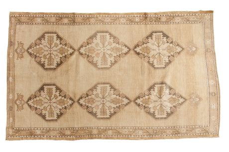 :: Sextuplet double column oriented center medallions in geometric relief and simplistic tribal feel. Mellow tone on tone character with soft earthen shades in sand, light bronze, bark brown, and ivory throughout. Recently professionally cleaned ready for in-home use! Many years of enjoyment to come with this vintage hand knotted Turkish Oushak carpet woven circa 1960's. Exact size measures 6'5" x 10'8".