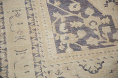:: Large scale shield-like center medallion atop an open field with corner spandrel overlays loosely reciprocating the contour of the main medallion. End field overlay niche in classic centuries old dragon stylized reciprocating design format. Colors and shades include: Ivory, dusty royal ink blue, cream, beige, sand and more. Condition notes: Mostly even wear across to knot heads. Fully secured sides and ends. Machine bound sides. For processing purposes, this and other rugs of the type may have painted numbers on the reverse side. Recently professionally cleaned ready for in-home use! Many years of enjoyment to come with this hand knotted Turkish Taspinar carpet made in Turkey circa 1980's vintage. Size measures 6'1" x 10'1".