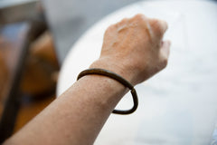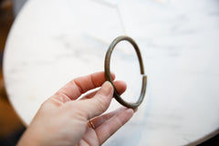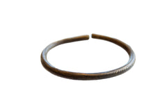 :: Antique handmade African bronze bracelet with faded detailing. Exceptional antique circa 1920s or older bracelet, likely used as currency. This piece is unique collectible, with great craftsmanship having gone into its creation! As this item is antique it may show signs of use, age, and/or oxidation. Please note that the sizes within this listing are approximate, and if you need the exact size please contact us prior to purchase. Size measures from outside edge: 3.5" x .5" x 3"