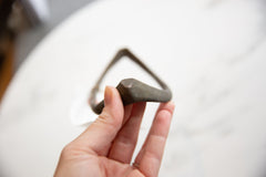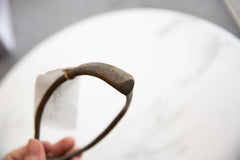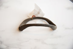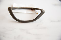 :: Antique handmade African bronze curved artifact. Circa early 20th century and possibly older, this unique piece has such incredible handmade charm. This item would make a great holder for circular objects such as bowls, or simply place it on a shelf for decoration. As this item is in antique condition, it may show signs of age and use. Size measures: 5.5" x 1.5" x 3"