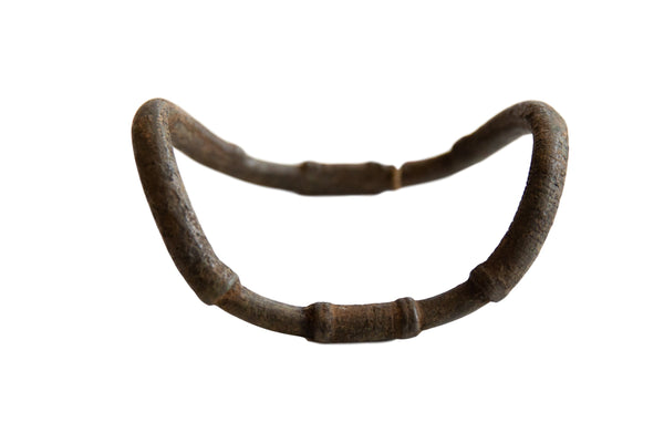 :: Antique handmade African bronze curved artifact. Circa early 20th century and possibly older, this unique piece has such incredible handmade charm. This item would make a great holder for circular objects such as bowls, or simply place it on a shelf for decoration. As this item is in antique condition, it may show signs of age and use. Size measures: 4.25" x 2" x 3"