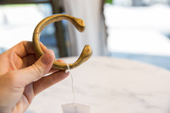 :: Antique handmade African bronze snake cuff bracelet. Exceptional antique circa early 19th century or older bracelet. Thought to be worn in order to protect the wearer from snake bites, though possibly used for currency as well. This piece is unique collectible, with great craftsmanship having gone into its creation! As this item is antique, it may show signs of use, age, and/or oxidation. Please note that the sizes within this listing are approximate, and if you need the exact size please contact us prior to purchase. Size measures from outside edge: 3.5" x 0.75" x 3"