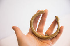 :: Antique handmade African bronze snake cuff bracelet. Exceptional antique circa first quarter 20th century, though possibly older, bracelet. Thought to be worn in order to protect the wearer from snake bites, though also given as part of a Dowry as a form of currency and to symbolize fertility in the new marriage. This piece is a unique collectible, with great craftsmanship having gone into its creation! As this item is antique, it may show signs of use, age, and/or oxidation. Size Measures: 0.75" x 3.25" x 3" with an interior dimension of 2.5" while the opening measures 1.25".