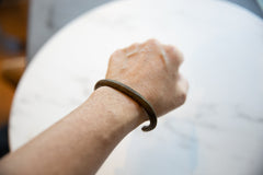 :: Antique handmade African bronze striped cuff bracelet. Exceptional antique circa 1920s or older bracelet, likely used as currency. This piece is unique collectible, with great craftsmanship having gone into its creation! As this item is antique it may show signs of use, age, and/or oxidation. Please note that the sizes within this listing are approximate, and if you need the exact size please contact us prior to purchase. Size measures from outside edge: 3.25" x .5" x 2.5"