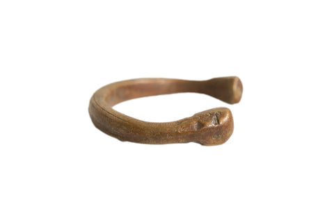 :: Antique handmade African copper snake bracelet. Exceptional antique circa 19th century or older bracelet. Thought to be worn in order to protect the wearer from snake bites, though also given as part of a Dowry as a form of currency and to symbolize fertility in the new marriage. This piece is unique collectible, with great craftsmanship having gone into its creation! As this item is antique, it may show signs of use, age, and/or oxidation. Please note that the sizes within this listing are approximate, and if you need the exact size please contact us prior to purchase. Size Measures: .5" x 3.25" x 3"