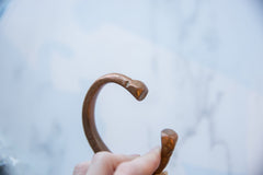 :: Antique handmade African copper snake cuff bracelet. Exceptional antique circa 19th century or older bracelet. Thought to be worn in order to protect the wearer from snake bites, though possibly used for currency as well. This piece is unique collectible, with great craftsmanship having gone into its creation! As this item is antique, it may show signs of use, age, and/or oxidation. Please note that the sizes within this listing are approximate, and if you need the exact size please contact us prior to purchase. Size Measures: 3.5" x 3" x .75"