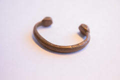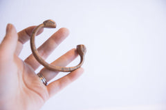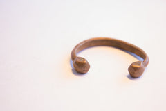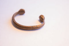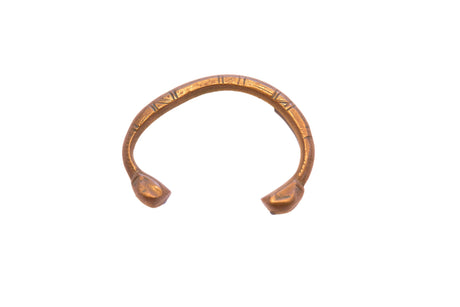 :: Antique handmade African copper snake cuff bracelet. Exceptional antique circa first quarter 20th century, though possibly older, bracelet. Thought to be worn in order to protect the wearer from snake bites, though also given as part of a Dowry as a form of currency and to symbolize fertility in the new marriage. This piece is a unique collectible, with great craftsmanship having gone into its creation! As this item is antique, it may show signs of use, age, and/or oxidation. Size Measures: 0.5" x 3" x 2" with an interior dimension of 2.5" while the opening measures 1.5".