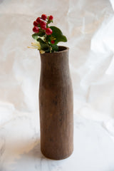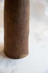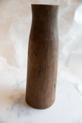 :: Antique handmade African tall wooden vase. This handmade wooden item has tons of character and charm. Circa early 20th century or possibly older. Please note this is an aged and lived with item, and as such it may have cracks, repairs, chips and/or imperfections. Kindly reference photographs for which of these may apply. Size measures: 14" x 3" x 3"
