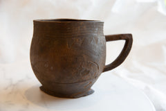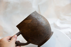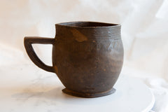 :: Antique handmade African wooden pitcher. This handmade wooden item has tons of character and charm. Circa early 20th century or possibly older. Please note this is an aged and lived with item, and as such it may have cracks, repairs, chips and/or imperfections. Kindly reference photographs for which of these may apply. Size measures: 6" x 9" x 6"