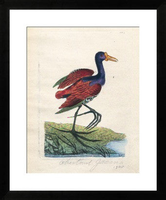 :: Beautiful revival / reproduction print of 18th Century hand-colored engraving titled "Chestnut Jacona" by Nodder for the naturalist writer George Shaw. Art is Giclée printed on thick 100% cotton premium archival acid-free paper with vibrant, archival and eco-friendly latex ink that gives your Giclée print an exceptional museum-quality finish. Wooden frame, handmade in USA. Measurements: 17"x22" print, 26"x31" frame, frame thickness is 1 5/8".