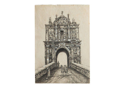 :: Antique chalk and charcoal drawing, circa 1880s, from the portfolio of an artist (initials MD) that mainly covers English landscapes. Amazing attention to detail, small-scale, beyond gorgeous - gate at Citadel in Plymouth, United Kingdom! In good condition, commensurate with age, exhibiting small signs of use and age. Kindly reference photos for which of these may apply. Measures 7" x 10".