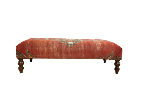 Antique Rug Fragment Ottoman Coffee Table