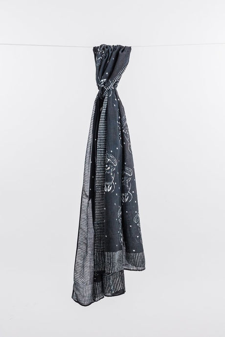 :: Hand block printed and dyed cotton and silk scarf made in India. Simplistic design throughout with a bordered edge in a beautiful deep terra cotta/ rust - it gets its color from a bath of flowers, fruit skins, and/or minerals. "Black Horse".
