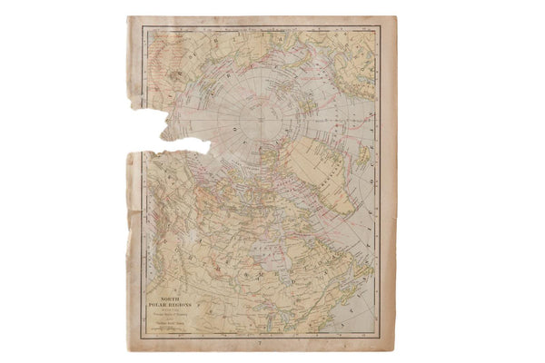 :: From Cram's Unrivaled Atlas of the World 1907 Edition, a map of North Polar Regions that measures 11.5" x 14.5". Page Numbers of original atlas index are: 7/0.8. In fair to poor condition, showing signs of use and age possibly including but not limited to: discoloration, oxidation, edge wear or loss, missing areas of map, pinholes, and small rips, tears or creases.