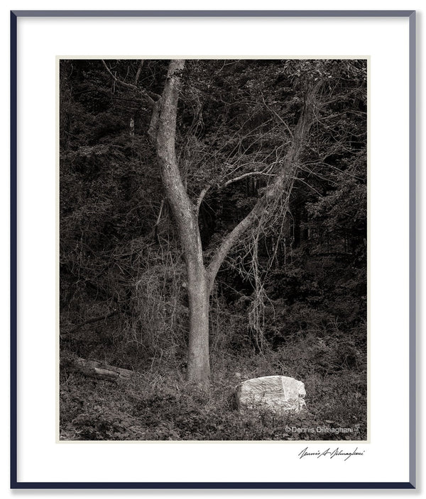 Black and White Photograph, Dream Tree and Glowing Rock, Audubon, CT