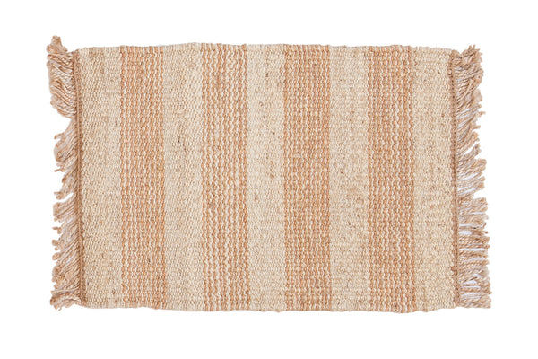 :: Handmade in India using both undyed and dyed material. Made with pure jute. Reversible and ideal for use indoors.