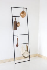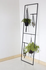 :: Made in USA, this is a beautiful and versatile display ladder for plants, bathroom linens, or kitchen pots and accessories. Steel with powder coat black finish. Kindly reference photos for condition or contact us directly! Size measures 2' x 6' with a 3/4" thick steel frame.