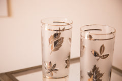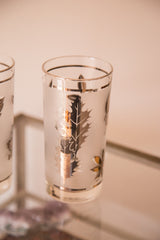 :: Vintage 1950s MCM Glassware with silver of Fall leaves. Lovely and excellent vintage condition. Set of 8.