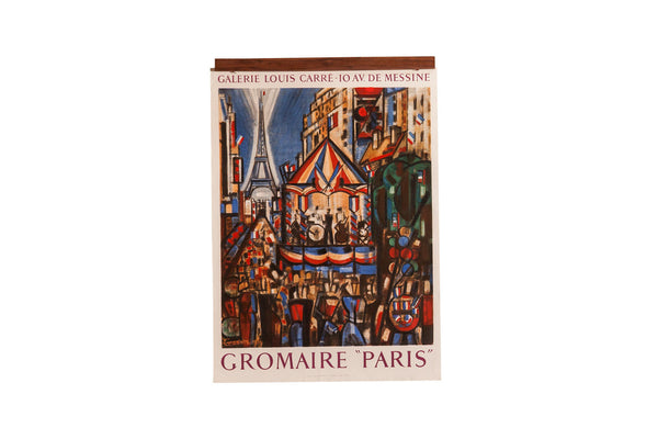 :: Vintage 1950s original French tourism lithograph poster designed and created by Marcle Gromaire, published by the Office du Tourisme de France and printed by Mourlot. Marcel Gromaire [French, 1872-1971]. Please note handmade walnut wooden magnetic rods are sold separately and this listing is just for the poster itself. Get in touch with us if you'd like to add on the rods as they are currently made to order. Vintage poster may show signs of age and use. Mounted to linen with what appears to have been with a reversible manner (like rice glue). Size measures Approximately 20" wide without linen, 23. 5" with linen x 27. 5" tall without linen + 30. 5" tall with linen.