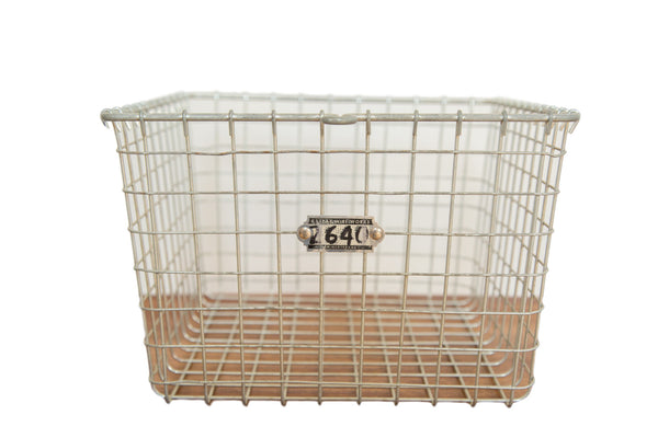 :: Original vintage 1950s/60s gym locker wire basket in unusual wider size. So perfect for storage system that stays true to mid century industrial aesthetic. Photos represent one of the many baskets we have in stock so number will be different than one received. All in like new condition except for the number area that may have signs of use with permanent marker, tape, or markings. Measures 12" x 13" x 8.5".