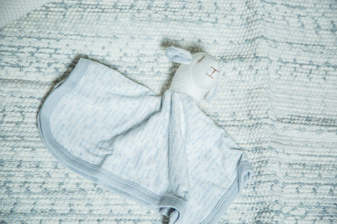:: All natural 100% organic Egyptian cotton stuffed animal toy for baby or toddler -- sheep with blanket at the bottom to go to sleep with, in light blue color. Adorable and with purpose, this toy will last a lifetime! Best yet, machine wash cold for easy cleaning. Made in Egypt by Under the Nile. Measures 10" tall, made with absolutely NO Azo colorants, BPA, flame retardants, formaldehyde, fragrance, PVC or lead.
