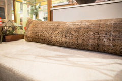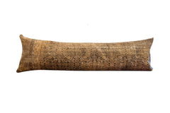 :: Antique Persian rug fragment circa 1915 / 1920s featuring incredible colors (gold, slate gray, beige, charcoal, dusty teal and more) sourced by ONH and handmade into a gorgeous extra long lumbar pillow that is perfect for the bed or sofa. Backed with beige linen blend fabric. As the fragment used to make the pillow is vintage there may be some signs of age and use on the fragment side - including but not limited to wear, foundation / knot heads showing, and color migration. Size measures approximately: 16" x 50". Contact us with any questions!