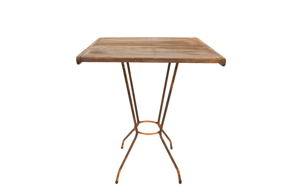 :: Adorable little side table that features square wood top and reclaimed vintage base -- is lightweight and features all reclaimed materials. Measures 27.5" tall x 24" x 24".