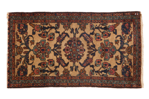 :: Fine early American Sarouk Persian rug, vintage circa 1920's. Beautiful and fine weave with excellent wool, great color and contrast in a classic throw rug size. Fringe restored to each end with moderate level of expertise. Beautiful rug in excellent condition with a tight weave, very much intact, would look great in a small area of a room that needs a pop of color! Measures 2'1" x 4'4" including the fringe.