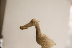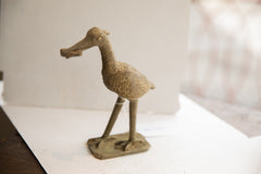 :: Vintage handmade African bird with fish sculpture. Circa late mid 20th century, though possibly older, this piece has such incredible handmade charm and no two are identical. Create a scene of wildlife with many of our vintage African animal sculptures or add just one to the shelf, these are beautiful collectibles that you or someone you love will cherish forever. As this item is in vintage condition, it may show signs of age and use. Size measures: 3" x 5.5" x 7".