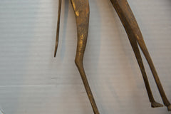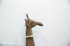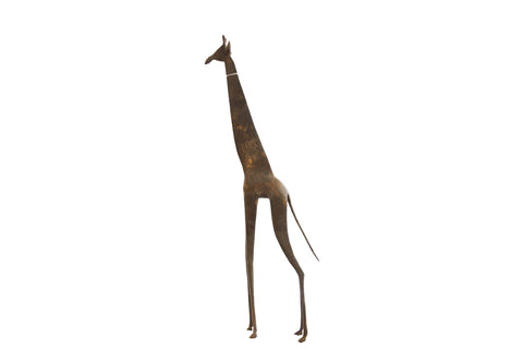 :: Vintage handmade African bronze alloy giraffe. Made approximately 40-70 years ago, each figure in this collection represents a different variation of protection and spirit used inside and outside of the local homes. These are beautiful collectibles that you or someone you love will cherish forever. As this item is in vintage condition, it may show signs of age and use. Size measures: 2" x 6.5" x 19".