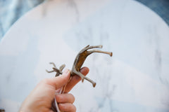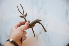 :: Vintage handmade African bronze alloy left facing gazelle. Circa mid 20th century and possibly older, this piece has such incredible handmade charm and no two are identical. Create a scene of wildlife with many of our vintage African animal sculptures or add just one to the shelf, these are beautiful collectibles that you or someone you love will cherish forever. As this item is in vintage condition, it may show signs of age and use. Size measures: 3" x 1" x 6.5"