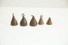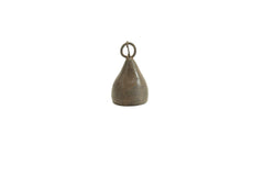 :: Vintage circa mid 20th century African bronze casting of a small bell that was worn around the ankle to make music while dancing. An adorable collectible piece of art. This item is in vintage condition and may show signs of age, use, and/or oxidation. As we have multiples of this item, the one you receive may differ slightly in size and/or patina. Please contact us prior to purchase if you would like us to send additional snapshots of the one we would be sending. Please note: while there are multiple items photographed, this listing is for one item only. Size measures approx. 3" x 2".