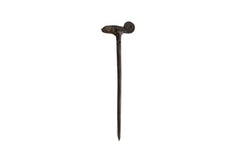 :: Vintage handmade African bronze chameleon pin. Circa mid 20th century and possibly older, this unique piece has such incredible handmade charm. As this item is in vintage condition, it may show signs of age and use. Size measures: .5" x 1" x 4"